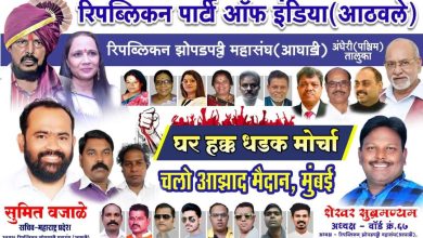रिपब्लिकन पक्षाचा झोपडपट्टी वासीयांच्या प्रश्नांवर उद्या आझाद मैदानात घर हक्क मोर्चा मुंबई दि.14 – रिपब्लिकन पार्टी ऑफ इंडिया ( आठवले)…