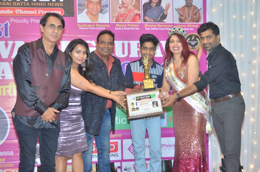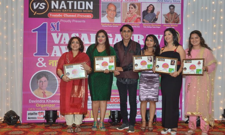 वसई तालुक्यातील विविध क्षेत्रात नेत्रदीपक कामगिरी करणाऱ्या व्यक्तींना व संस्थांना त्यांच्या कार्याची दखल घेऊन त्यांना पुरस्कारांनी सन्मानित करण्याचा शानदार सोहळा दि. ६ मार्च २०२२ रोजी ‘ड्रीम अँरीना ‘ सभागृह बरामपूर ,वसईरोड (पश्चिम ) येथे संपन्न झाला. या सोहळयाचे आयोजन व्ही .एस.नेशन व वसई सत्ता चे दवेंद्र खन्ना यांनी केले .