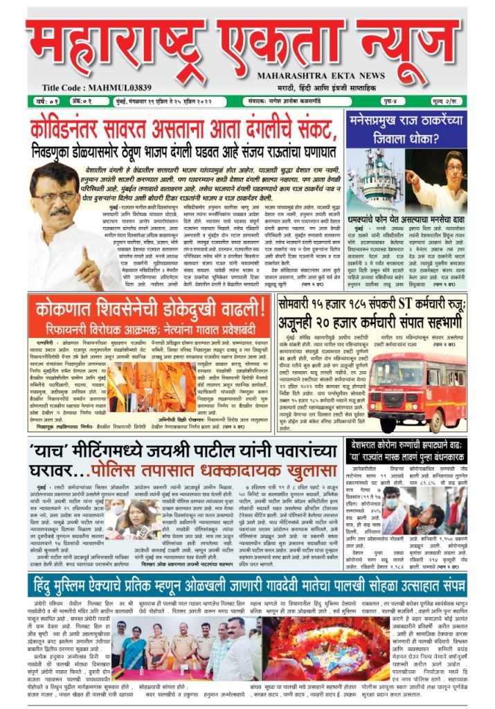 Home/Uncategorized/Maharashtra Ekta News E Paper Uncategorized Maharashtra Ekta News E Paper महाराष्ट्र न्यूज 9 Send an email April 25, 20220 47 Less than a minute Facebook Twitter Messenger Messenger WhatsApp Telegram महाराष्ट्र न्यूज 9 Send an email April 25, 20220 47 Less than a minute Facebook Twitter Messenger Messenger WhatsApp Telegram Share Facebook Twitter Messenger Messenger WhatsApp Telegram
