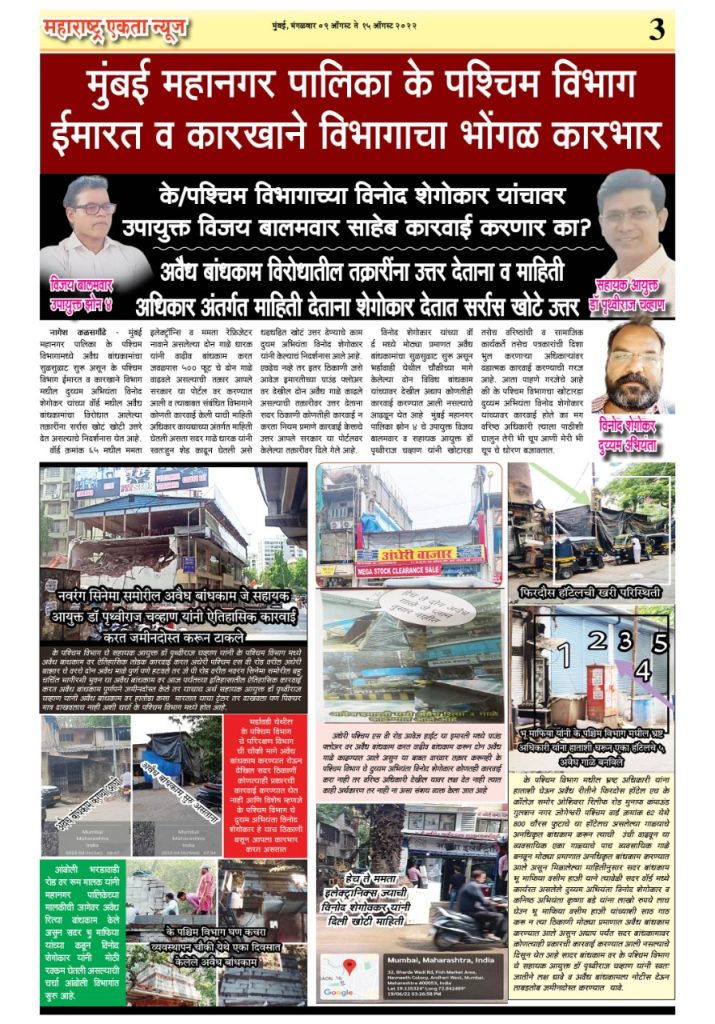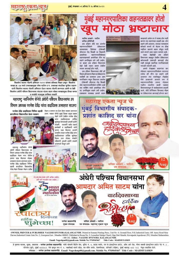 Home/Uncategorized/Maharashtra Ekta News E Paper 08 August To 15 August 2022 Year 1 Issue Number 17. Uncategorized Maharashtra Ekta News E Paper 08 August To 15 August 2022 Year 1 Issue Number 17. महाराष्ट्र न्यूज 9 Send an email August 11, 20220 14 Less than a minute Facebook Twitter Messenger Messenger WhatsApp Telegram पेज नंबर १ पेज नंबर २ पेज नंबर ३ पेज नंबर ४ महाराष्ट्र न्यूज 9 Send an email August 11, 20220 14 Less than a minute Facebook Twitter Messenger Messenger WhatsApp Telegram Share Facebook Twitter Messenger Messenger WhatsApp Telegram