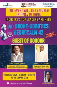 इस अवसर पर माननीय अतिथि श्री सुनील राणे, संस्थापक एवं कुलाधिपति, अथर्वा यूनिवर्सिटी ने शैक्षणिक भागीदार के रूप में सहभागिता की। इस कार्यक्रम ने न्यूरोसाइंस, आर्टिफिशियल इंटेलिजेंस, ड्रोन और रोबोटिक्स को एक सशक्त भविष्य दृष्टि में पिरोया।