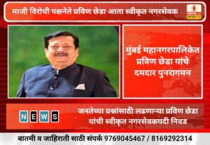 महानगरपालिकेत प्रवीण छेडा यांची दमदार पुनरागमन असल्याची चर्चा मुंबई मध्ये सुरू झाली आहे